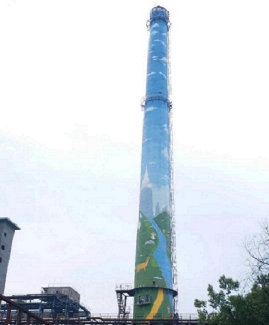 ③煙囪彩輪:在銅墻、鐵墻外表面140~210m高度處涂上紅白相間的彩圈。滿足較好的美觀性要求,紅白相間,色彩系統(tǒng)明亮,平坦無色,各部位顏色鮮艷,光、色補(bǔ)償性能好,光澤好,不易污染,污染易清洗。
